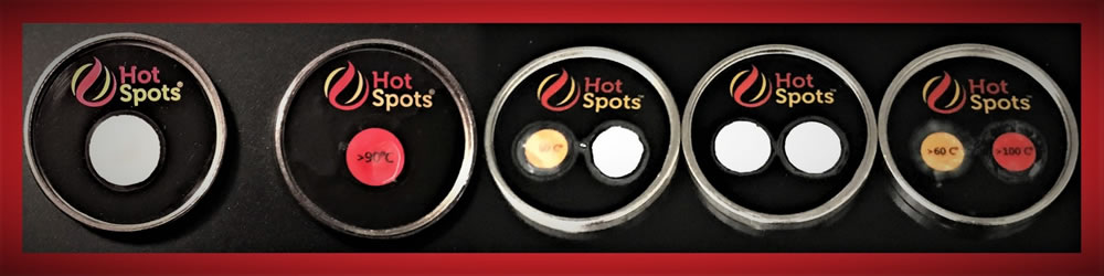 Son sensores magnéticos que cambian de color cuando superan un valor de temperatura de advertencia: color amarillo y color rojo cuando superan el valor de alarma.